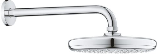 Potinkinė dušo galva Tempesta 210 su lietaus dušo srove. Galva tvirtinama su 29 cm ilgio alkūne.